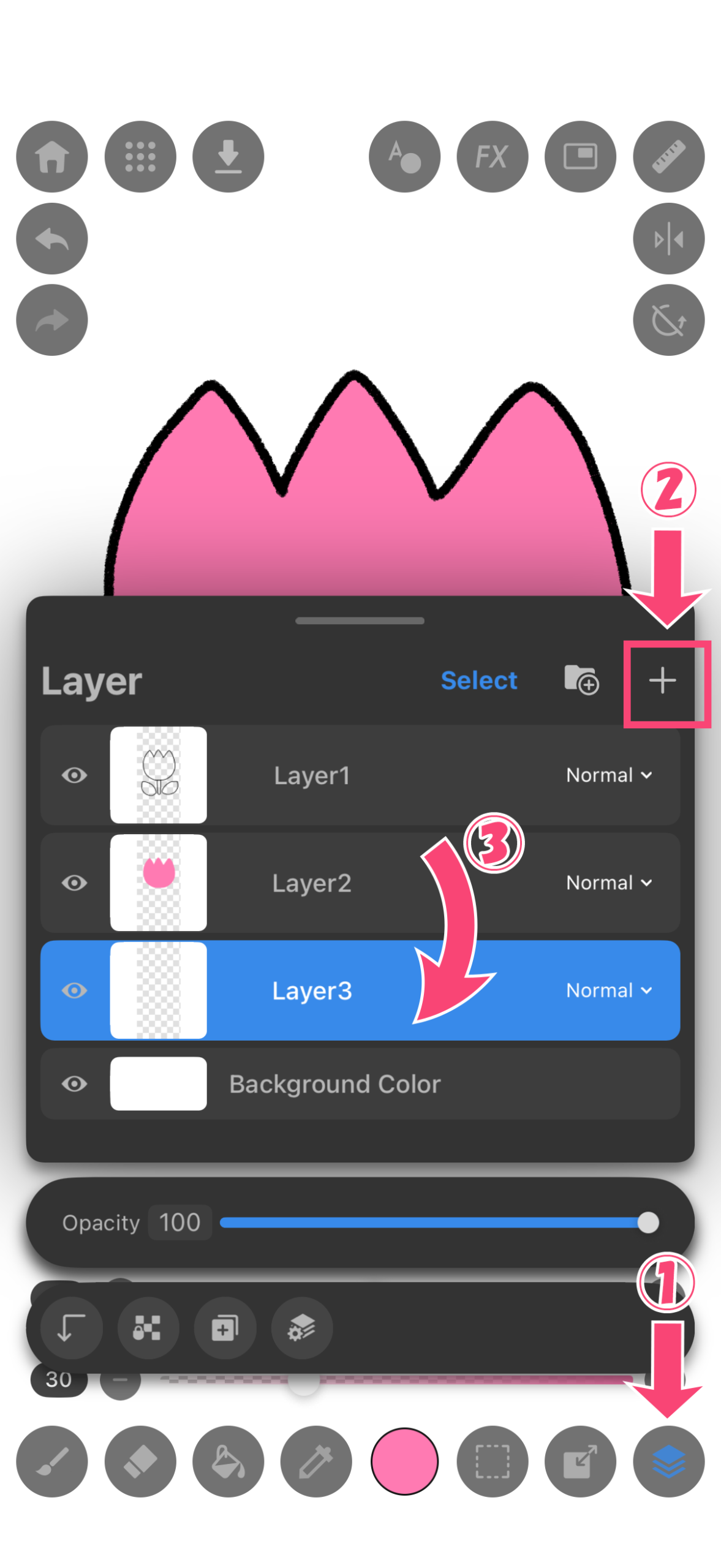 ★Tip3:By placing the coloring layer below the line art, your lines won’t disappear when you paint!