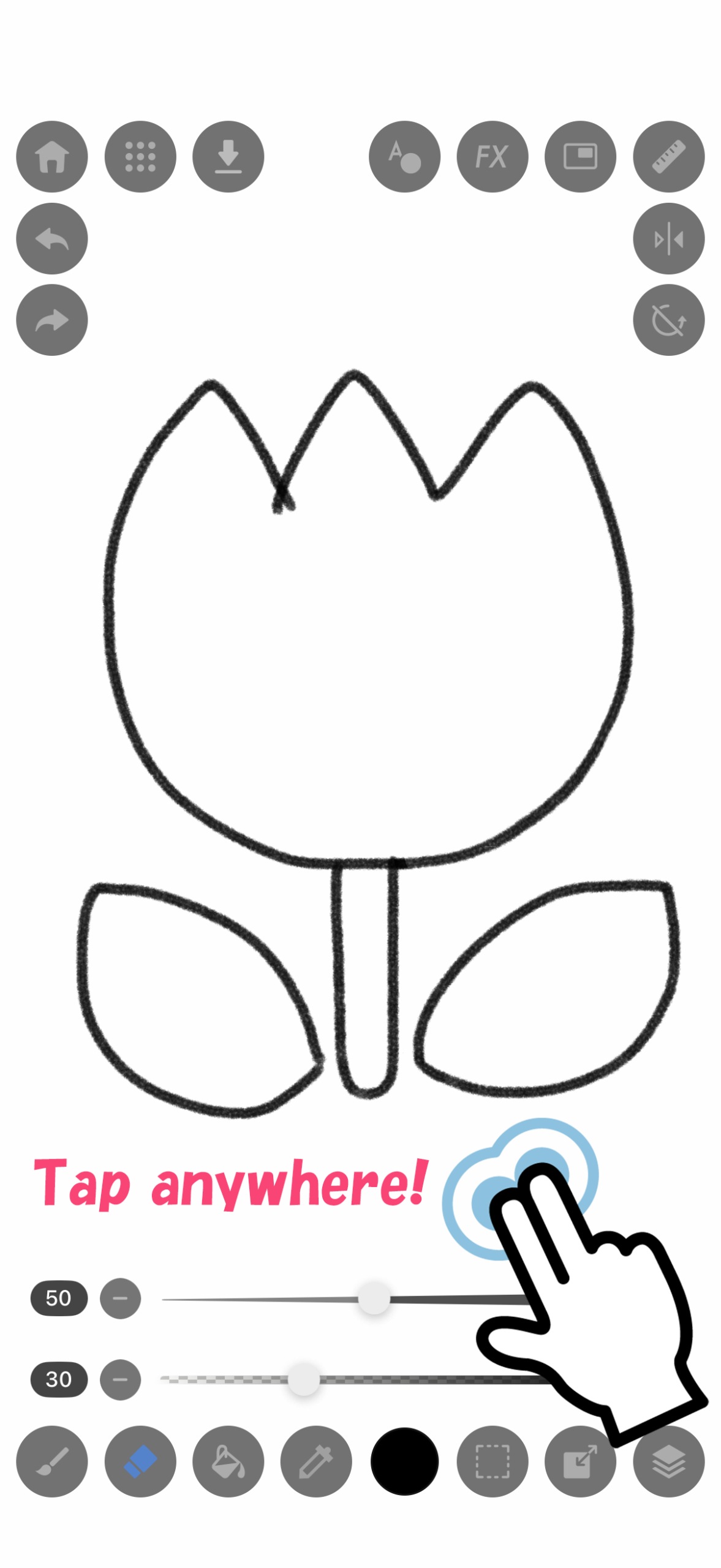 The app has many features, but getting started is simple. Let’s try drawing a tulip with the basic tools and enjoy the fun of finishing an illustration!