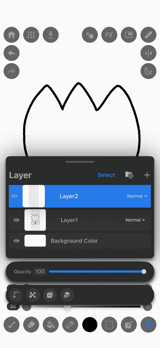 4.Tap and hold the new layer (Layer 2). Then, drag it below the line art layer (Layer 1).