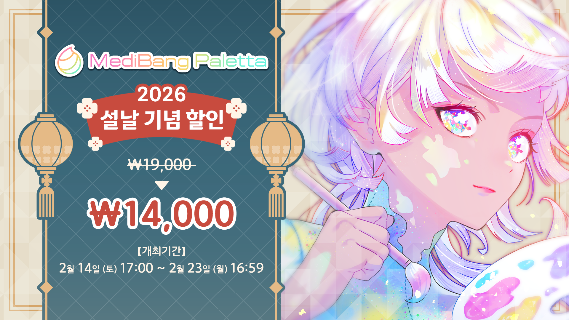 MediBang Paletta를 기간 한정 특별 가격에 구매하실 수 있는 할인을 실시하고 있습니다.