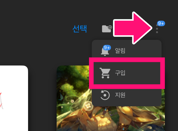 ※ 어플리케이션 홈화면 우측 상단에서 구매하실 수 있습니다.