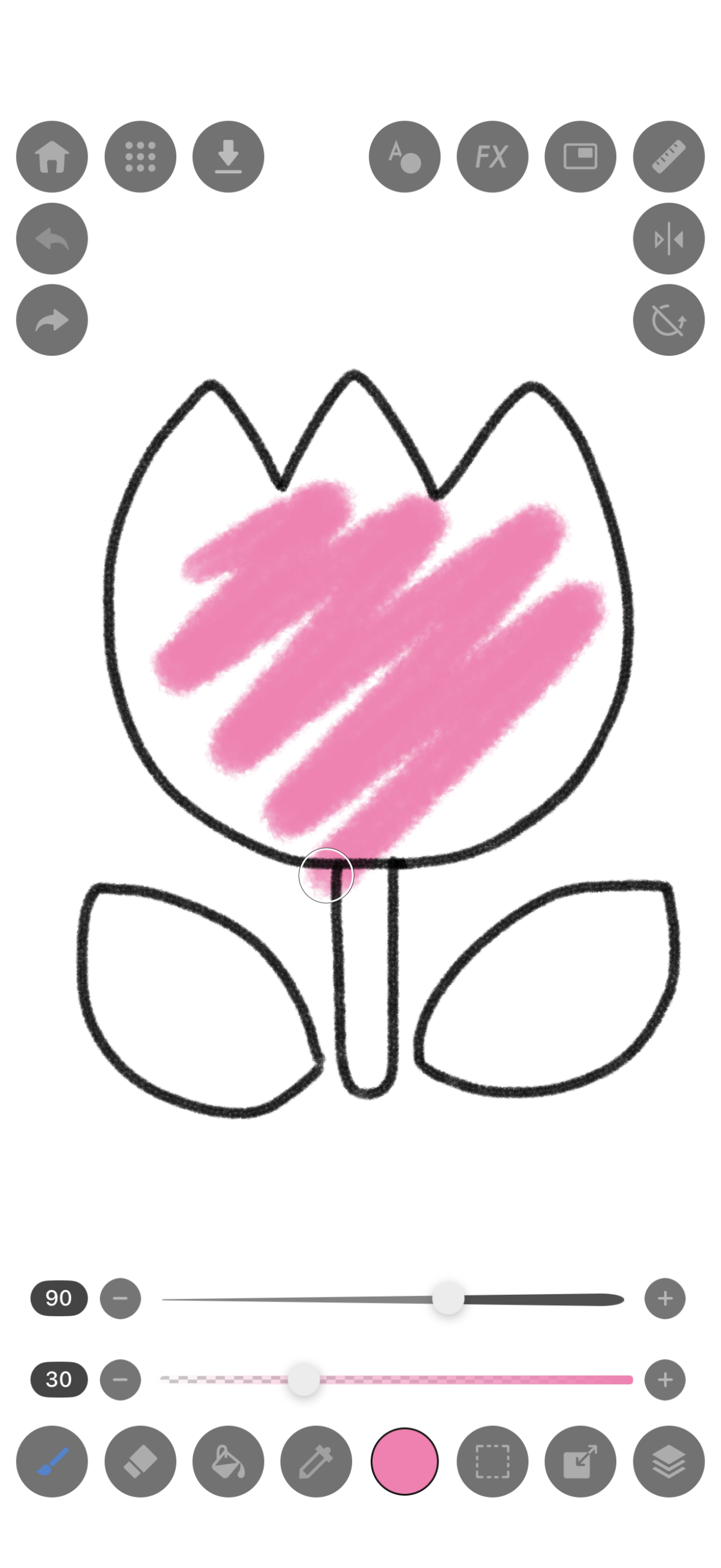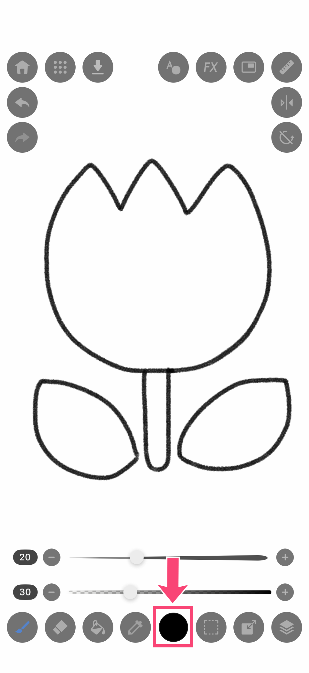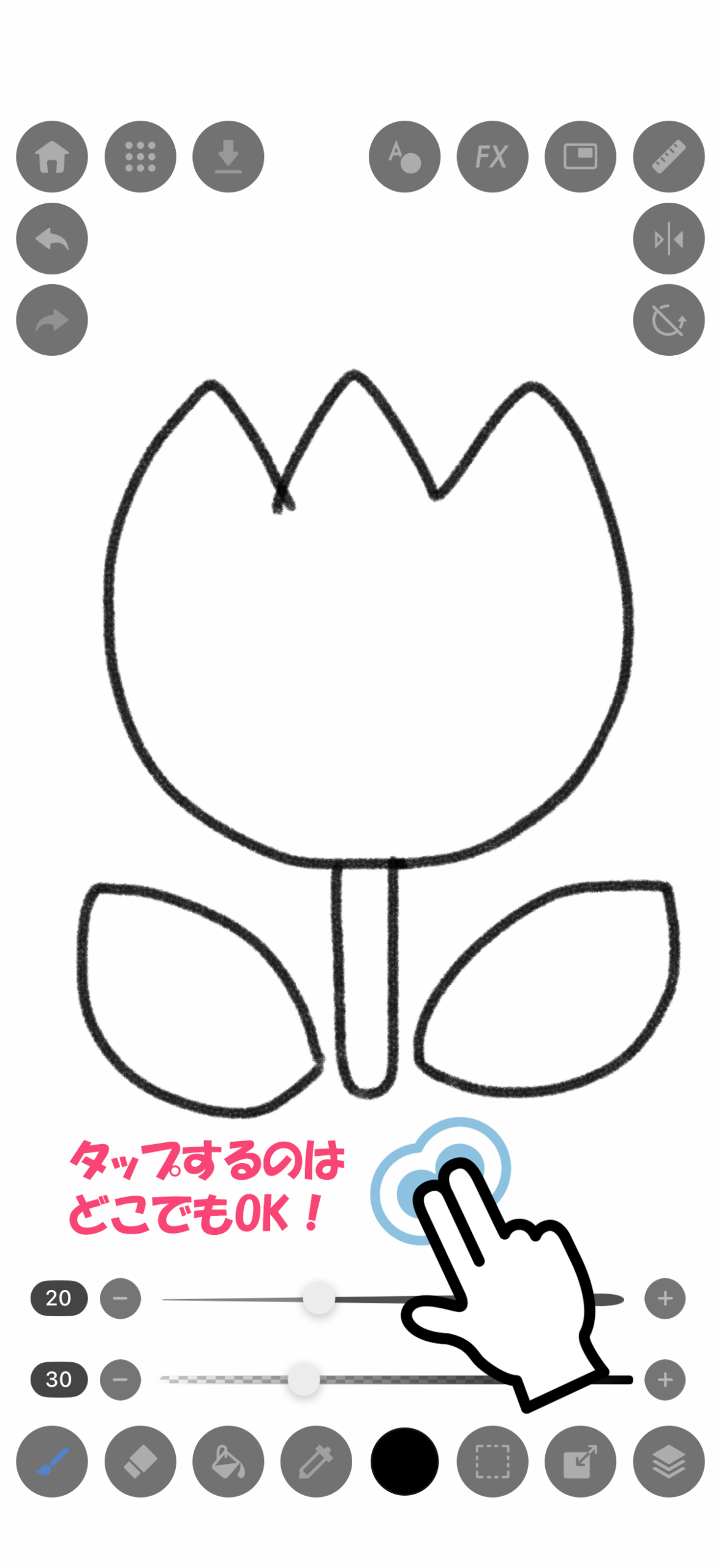 メディバンパレッタは多機能なアプリですが、最初に覚えることはシンプルです。基本ツールを使って「チューリップ」を描きながら、イラストを完成させる楽しさを一緒に体験してみましょう!
