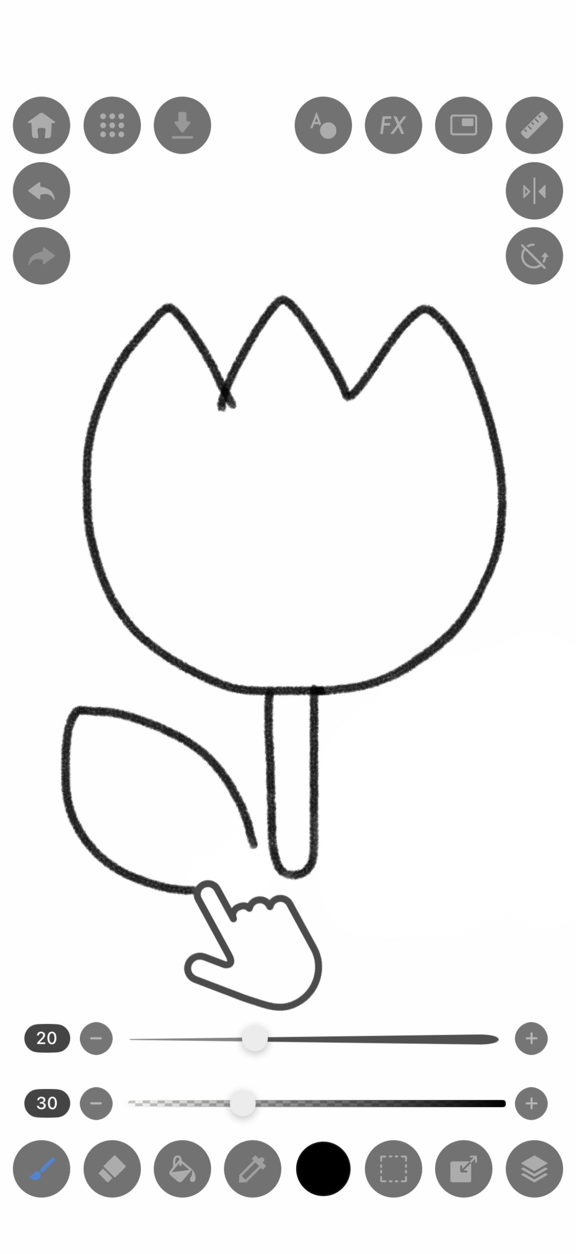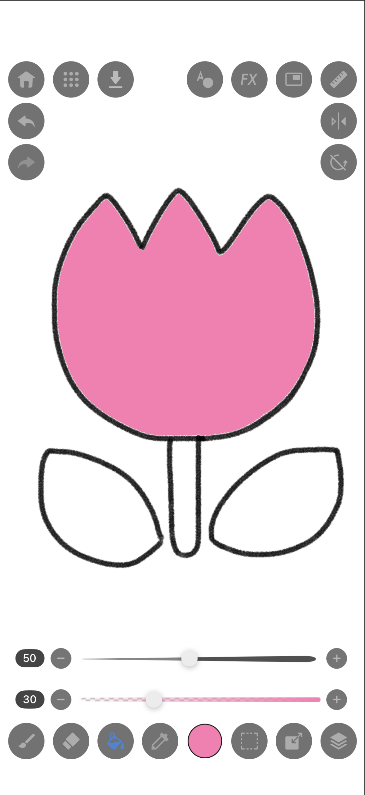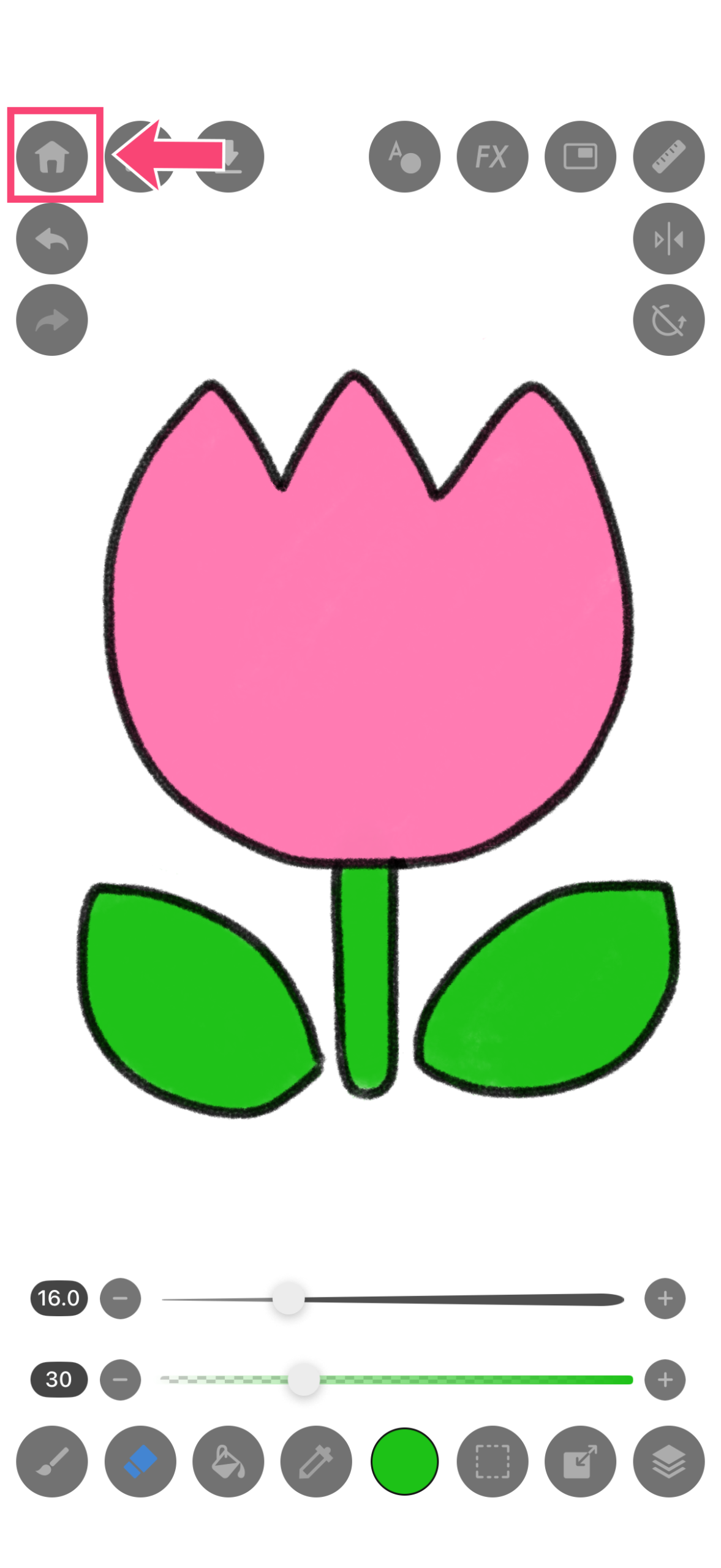 メディバンパレッタは多機能なアプリですが、最初に覚えることはシンプルです。基本ツールを使って「チューリップ」を描きながら、イラストを完成させる楽しさを一緒に体験してみましょう!