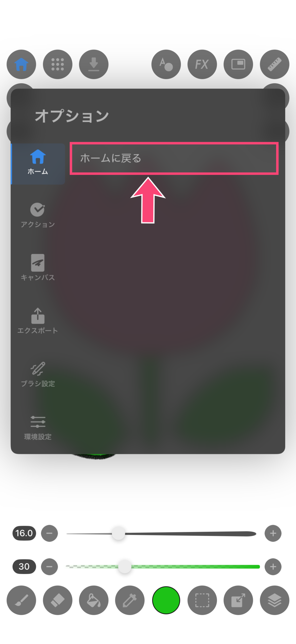 2.画像として保存(書き出し)する場合は、「ホームアイコン」をタップ!