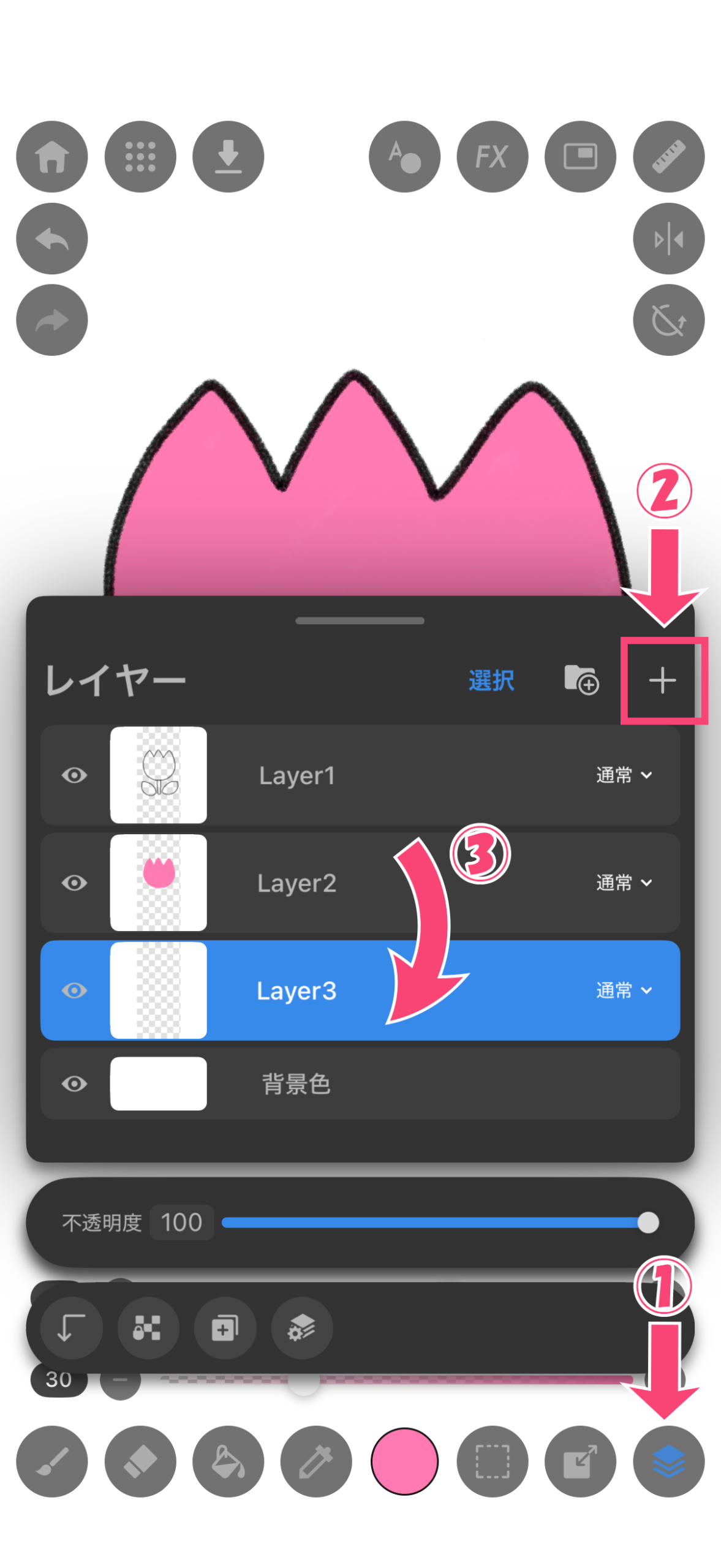 ★Pointその3:線画の下に色塗り用のレイヤーを置くことで、色を塗っても線が消えなくなります!