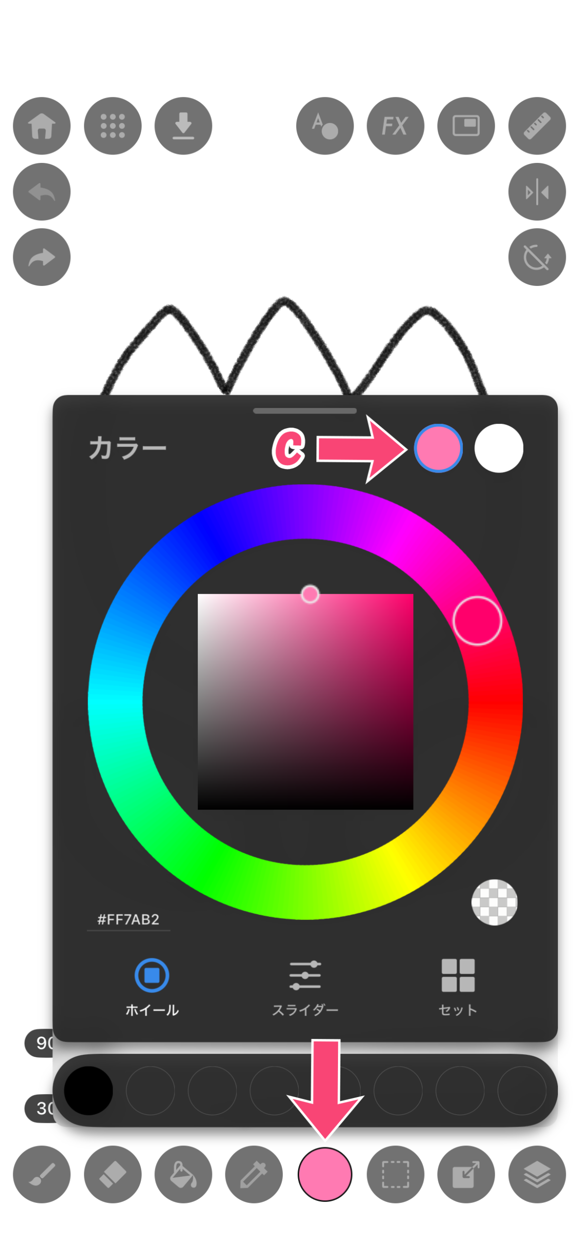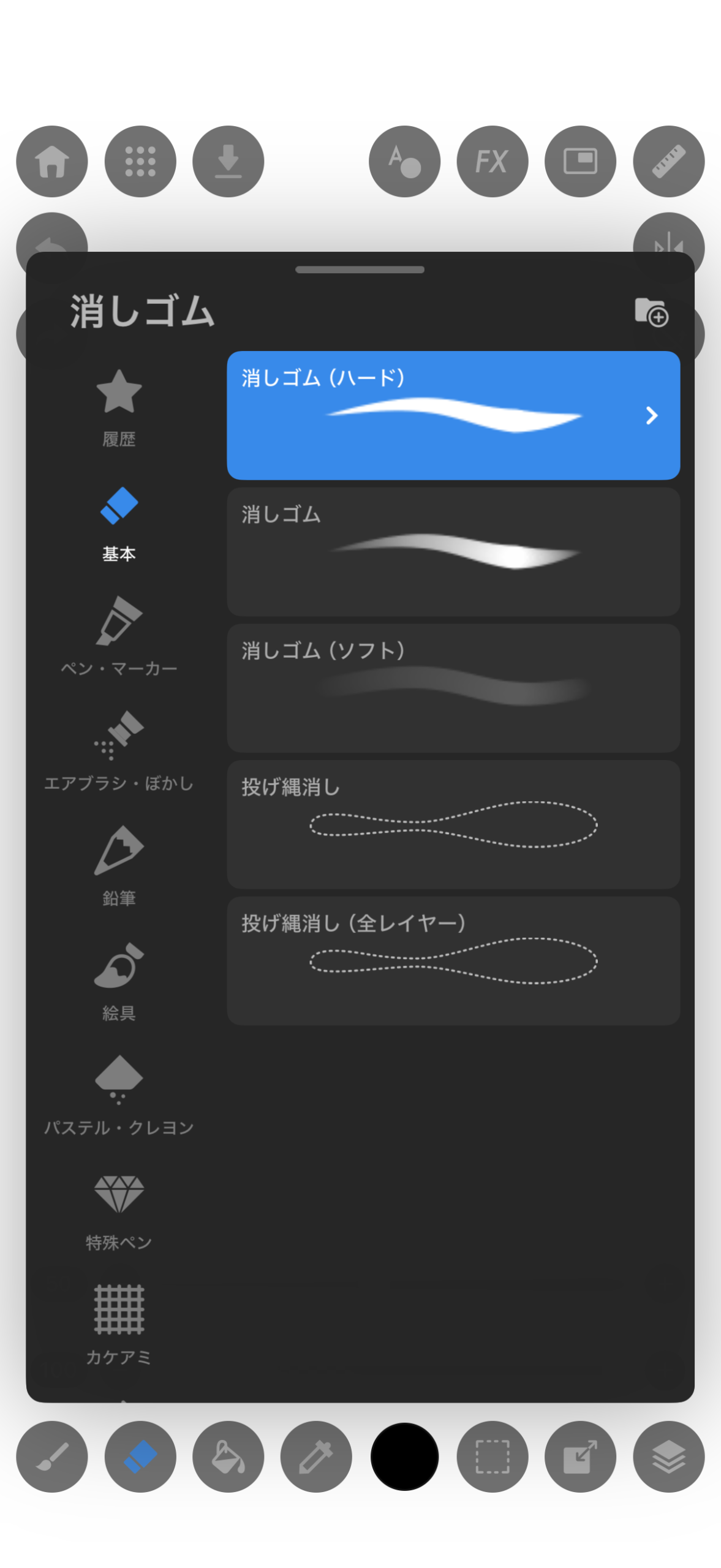 3.ブラシを選んだら、もう一度「ブラシアイコン」をタップし、ブラシウィンドウを閉じます。