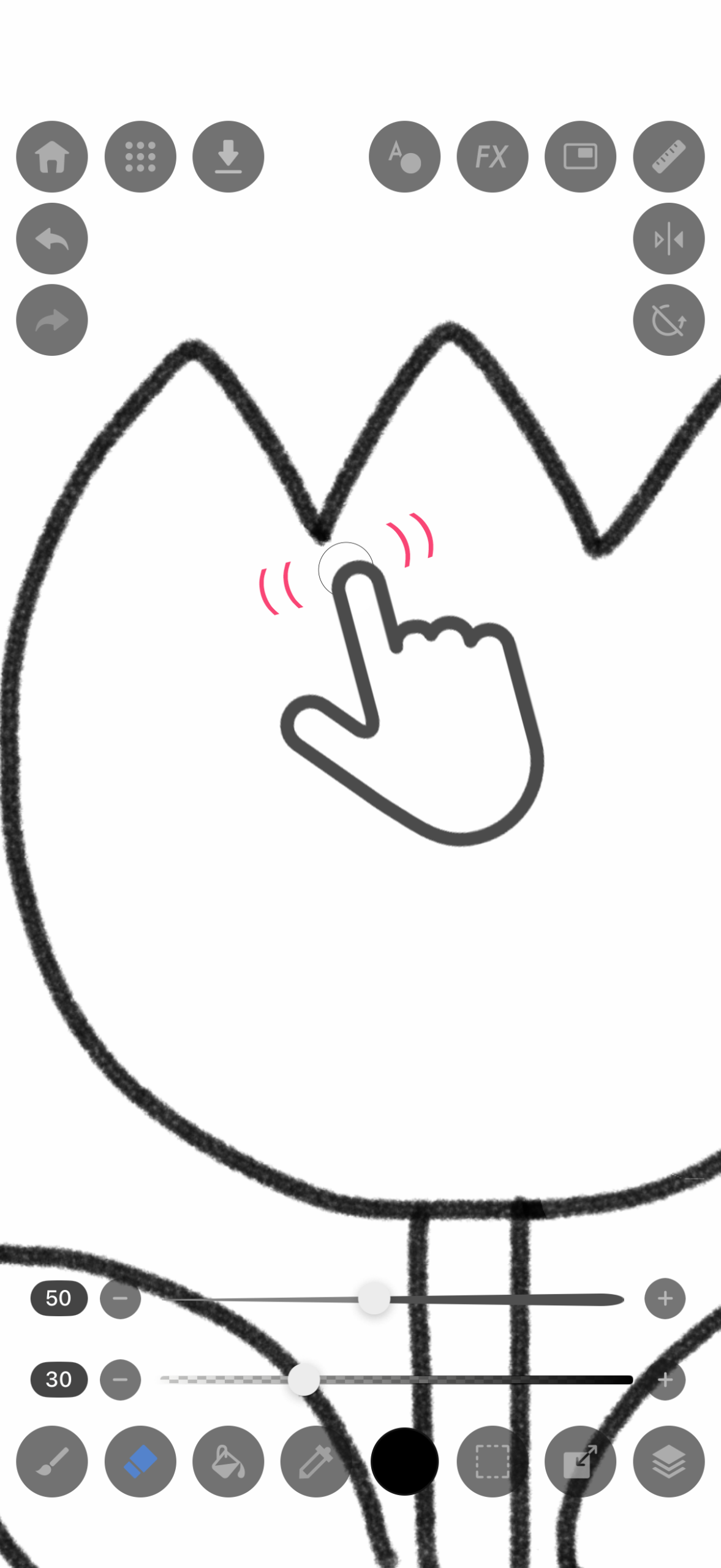 1.線の一部を修正したいときは、「消しゴムアイコン」をタップします。