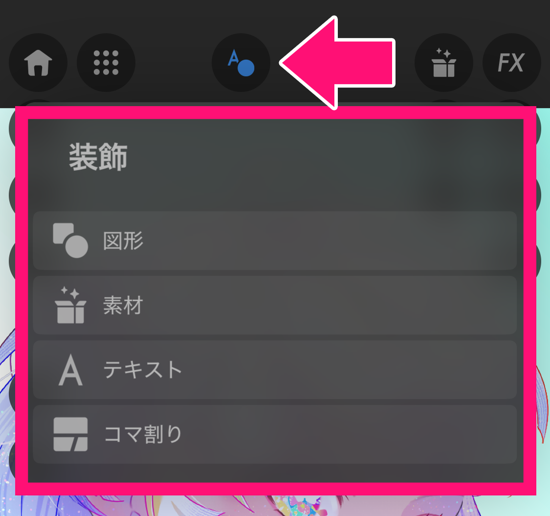 図形ツール・素材・テキストツール・コマ割りツールをまとめて選べる装飾メニューが追加されます。