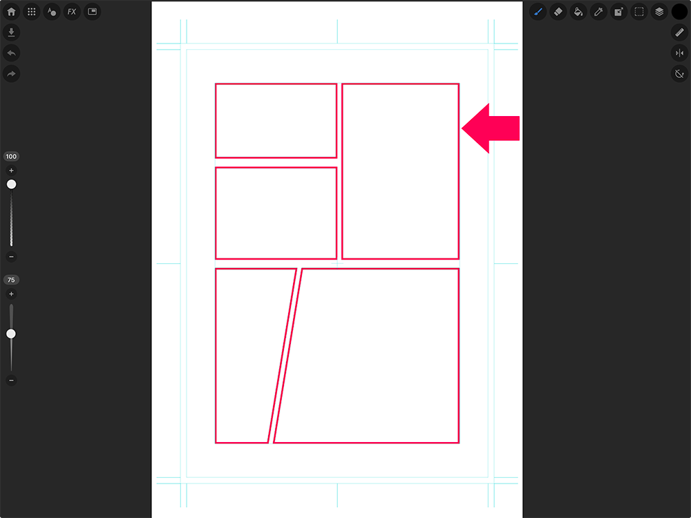 コマの分割は縦、横、斜めに分割することができますので下書きに合わせて自由に分割しましょう。