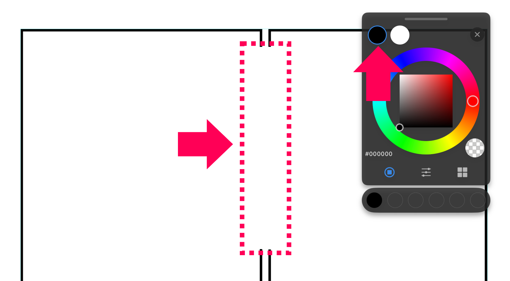 ブラシの色を黒に変更し、消したい部分を塗る事でマスクをかけることができます。
