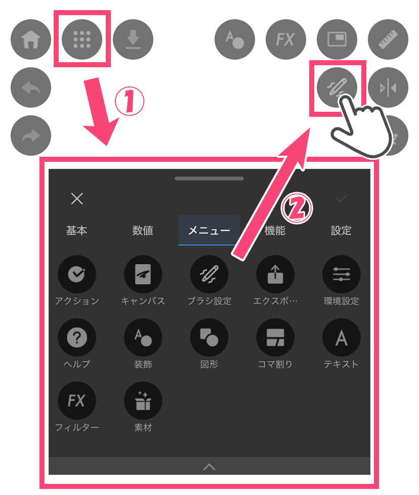 ①「ブラシアイコン」をタップ