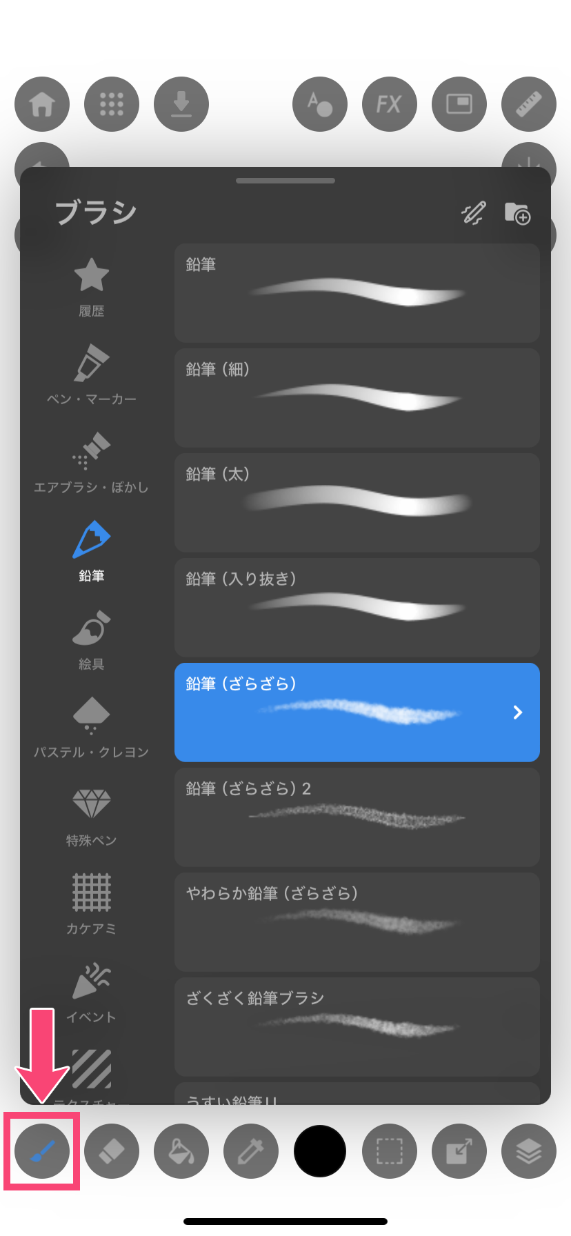 メディバンパレッタで表示されるブラシウィンドウは、カテゴリごとに分けられていて便利です。
