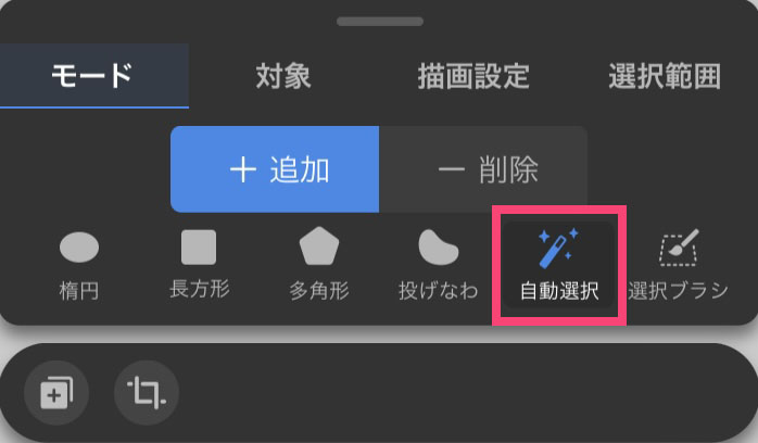 自動選択でアート全体を選択し、選択範囲タブで境界描画をタップします。