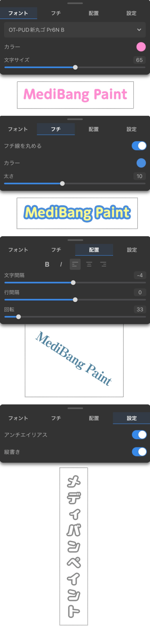 また、こちらの記事では、メディバンペイントで様々なフォント加工をする方法を詳しく紹介しています。