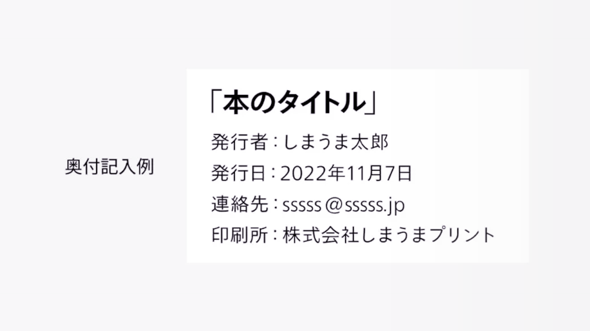 同人誌を作る時には、発行責任元を明確にするために奥付をつけるというルールがありますが、