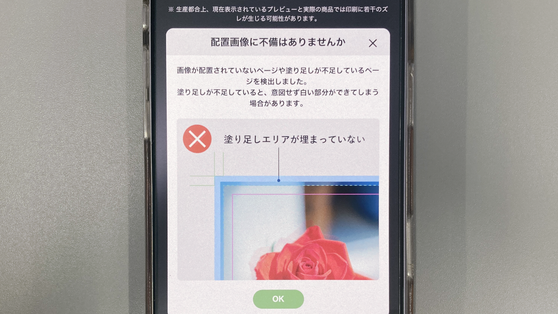 ページより、画像の幅が小さいと警告は出ますが、そのまま注文はできるみたいです。