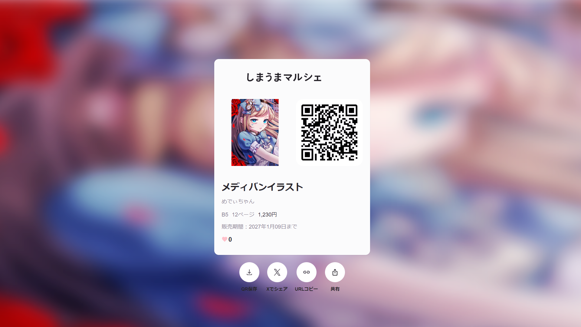 出品しても、ネットショップのように誰でも見られるページに大公開されるわけではなく、専用の販売ページのURL・QRコードが発行されて、URLを共有した人にだけ販売できるので安心です。